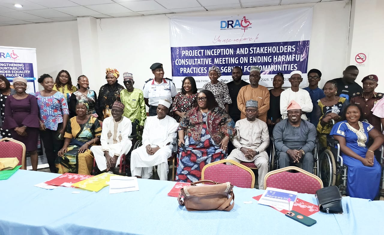 In a powerful move aimed at dismantling deeply rooted harmful traditional practices and systemic gender-based violence, the Disability Rights Advocacy Center (DRAC) has officially launched the Strengthening Community Accountability For Gender Equality (SAFE) Project. The ambitious two-year initiative seeks to challenge the long-standing drivers of Sexual and Gender-Based Violence (SGBV), particularly as they affect women and girls with disabilities in communities across the Federal Capital Territory (FCT) and Nasarawa State.