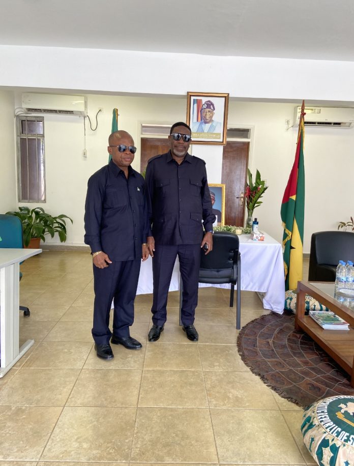 In a solemn and symbolic gesture of Pan-African solidarity, the Ambassador of Equatorial Guinea to São Tomé and Príncipe, His Excellency Mr. Paulino Bololo Ecobo, has paid a condolence visit to Nigeria’s diplomatic envoy, Ambassador Dr. Chris Nwanoro, following the death of Nigeria’s former President, Muhammadu Buhari, GCFR.
