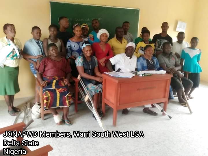 The Chairman, the Secretary and every members of JONAPWD, Warri South West LGA appreciates the Governor of Delta State and the Executive Chairman of Warri South West LGA for their good deeds and concerns towards persons with disabilities.